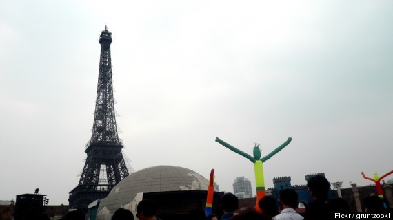 Dengan skala 1:6 dibanding ukuran asli Eiffel, menara ini merangkap sebagai pemancar seluler.