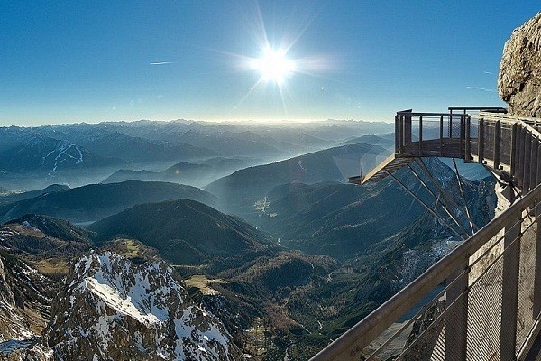 Anda akan disuguhkan pemandangan pegunungan Alpen, dan kota terdekat Schladming dari ketinggian. Yang fobia ketinggian pasti langsung lemas. Dachstein Stairway to Nothingness merupakan yang tertinggi di Austria. Menariknya, di ujung jembatan terdapat sebuah pijakan yang seakan tidak ada, karena terbuat dari kaca.
