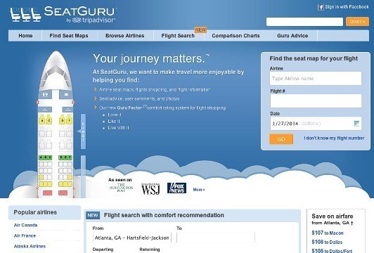 SeatGuru punya denah bagian dalam hampir semua pesawat komersil di dunia. Situs ini juga menyediakan detail seperti 'terlalu dekat ke toilet', 'ruang kaki yang sempit', dan lain-lain.