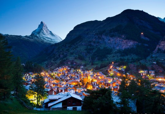 Inilah kota di bawah pegunungan ALpen yang sangat terkenal lewat pemandangan menakjubkan. Biasanya, Zermatt didatangi untuk mereka yang senang berolahraga ski. Jumlah mobil yang sedikit membuat udara di sana terhitung bebas polusi.