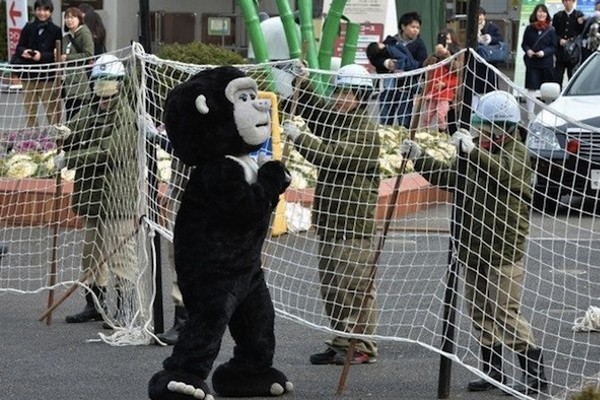 Jadilah akhirnya ada 'gorila' lepas, kemudian datang truk berisi para pegawai kebun binatang dengan senjata bius. Si gorila pingsan lalu dibungkus jaring dan diamankan. Aksi ini ditonton oleh anak-anak pengunjung kebun binatang. Lucu, seru, tapi aneh tidak sih?