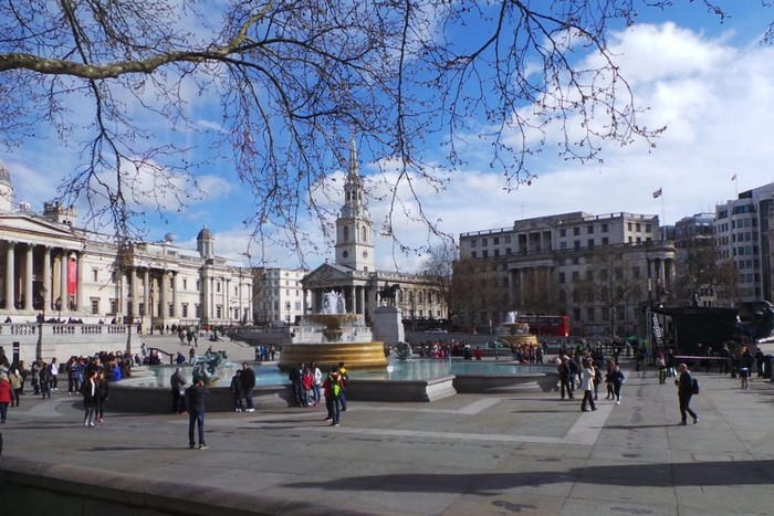 Nama tempat ini sebelumnya adalah 'King William the Fourth's Square'. Namun George Ledwell Taylor menyarankan penggantian nama tersebut menjadi Trafalgar Square. Selain tempat berwisata dan nongkrong, Trafalgar Square juga sering digunakan untuk demonstrasi buruh dan pekerja di London.