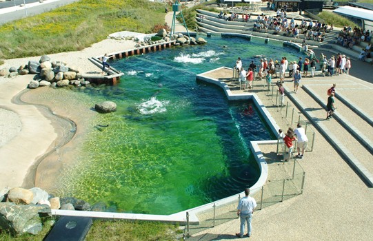 Di sini, wisatawan bisa melihat pertunjukkan lumba-lumba dan anjing laut. Anak-anak juga dibolehkan menginap di sana, di samping kolam hiu.