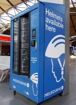Semua desain helmnya memang sama, namun tersedia dalam 3 ukuran. Anda bisa membeli helm sepeda seharga AUD 5 (Rp 56.000). Mesin ini bisa ditemukan di banyak 7-Eleven seantero Melbourne.