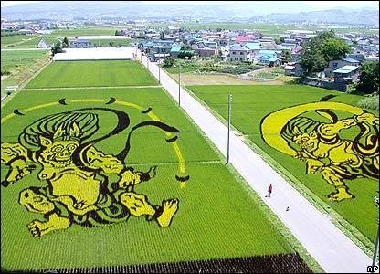 Sejak 1993, penduduk Desa Inakadate di Jepang membuat karya seni berupa 'lukisan' raksasa di tengah sawah. Mereka menggunakan padi warna-warni untuk membuat aneka bentuk lukisan, yang terbaru adalah Gunung Fuji.