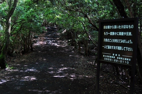 "Hidup Adalah Sesuatu yang Berharga Untuk Anda dan Keluarga," demikian nasihat larangan bunuh diri yang terpasang di salah satu pintu masuk hutan. Peringatan ini sengaja dipasang untuk mencegah orang yang ingin bunuh diri di tempat ini. "Coba Renungkan Tentang Keluarga dan Anak-Anak Anda, Anda Tidak Hidup Seorang Diri," sebuah tulisan di papan lainnya kian memperkuat larangan bunuh diri di hutan.