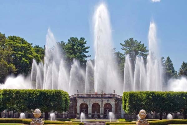 Longwood Gardens Fountains memiliki 380 nozel dan 18 pompa yang dapat menyemprotkan 37.854 liter air per menit dengan ketinggian hingga 39 m. Selain itu ada juga lampu warna warni untuk memperindah tampilan air mancur.