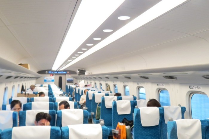 Interior Shinkansen tampil dengan nuansa modern minimalis. Konfigurasi bangkunya adalah 3-2, sekilas jadi mirip bus antar kota.