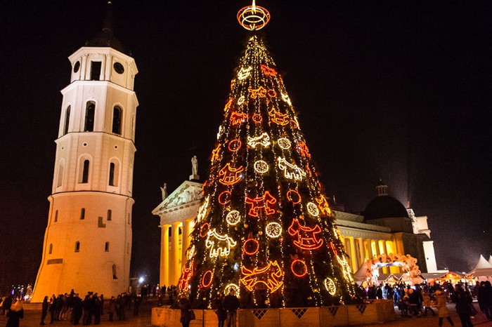 Bayangkan ada pohon cemara setinggi 5 lantai alias 24,6 meter. Ornamen seperti salju memenuhi pohon ini. Pohon ini rutin menghiasi pusat kota Vilnius selama bulan Desember.