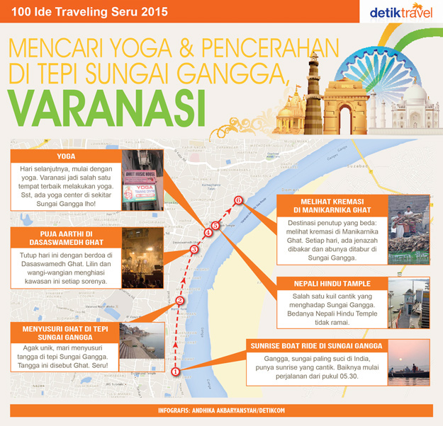 Memulai pagi di Varanasi dengan melakukan boat ride di Sungai Gangga, sampai menutup hari dengan melihat upacara agama di tepian Sungai Gangga. detikTravel menyusun itinerari dua hari mencari pencerahan bareng teman di Varanasi: