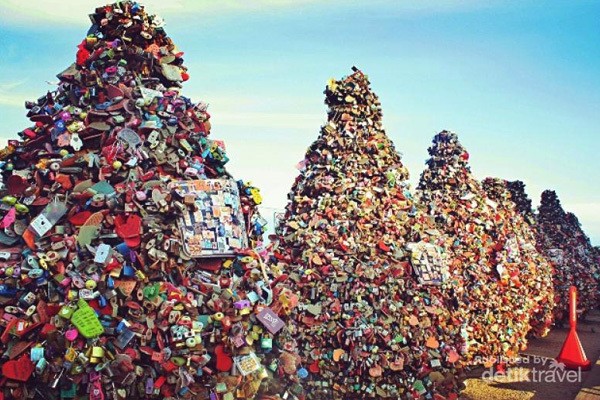 N Seoul atau Namsan Tower di Seoul, Korea Selatan juga punya gembok cinta. Sudah banyak sekali gembok cinta yang terkunci di menara ini. Saking banyaknya, ada bagian kumpulan gembok ini bahkan menyerupai pohon.
