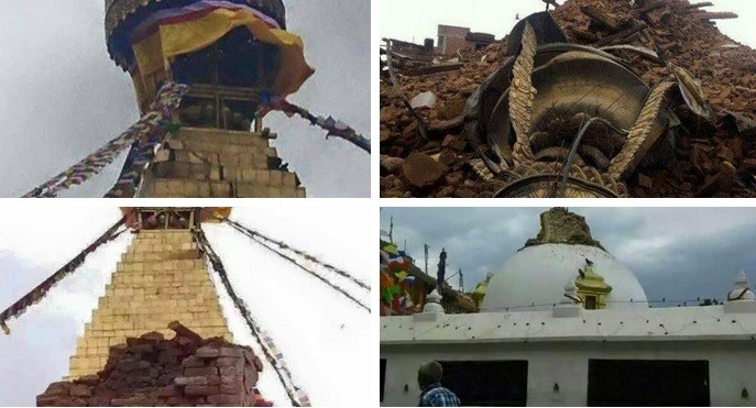 Berdasarkan foto yang beredar di internet, terlihat kerusakan yang cukup parah dari Boudhanath Stupa. Disebutkan kalau beberapa bagian stupa hancur, walaupun tidak semua. Semoga bencana yang menimpa Nepal segera berlalu.