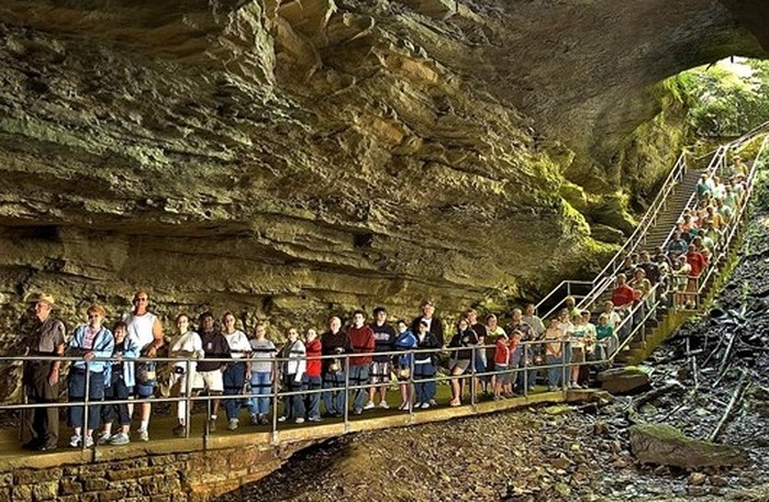 Bagi traveler yang penasaran dan ingin masuk ke dalam Gua Mammoth, pihak taman nasional membuka gua hingga sepanjang 12 Km. Tangga turun serta pegangan dan pencahayaan pun sudah tersedia, jadi wisatawan bisa lebih puas melakukan eksplorasi.