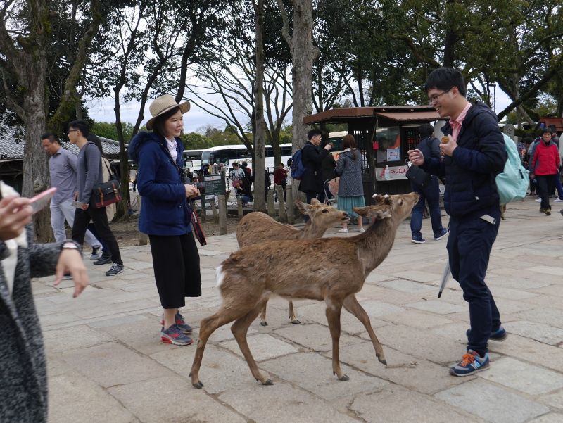 Kalau mau memberi makan rusa pun bisa lho. Di Nara Park memang banyak yang menjual makanan untuk rusa. Jadi kalau memang berniat memberi makan hewan itu, traveler bisa membelinya dengan harga sekitar 150 Yen.