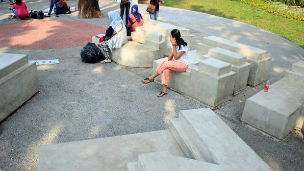 Mayoritas traveler pun tampak sedang bersantai di atas kursi berbentuk huruf yang tersedia di taman. Sejumlah mural hingga kata-kata emas dari sejumlah tokoh bangsa pun terpatri di lantai taman. Antara lain dari Mohammad Hatta, mantan Presiden Gus Dur, Hamka hingga YB Mangunwijaya atau yang populer dengan Romo Mangun.