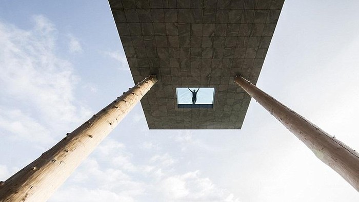 "Untuk desain kolam renang kami terdorong untuk mengaburkan batasan fisik untuk menciptakan sebuah elemen, yaitu menyatukan lanskap, menirukan awan dan menciptakan view panorama," ujar Lukas Rungger dari Noah Architect.