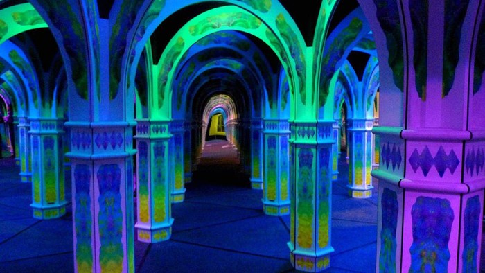 Diciptakan oleh Charles Magowan, traveler akan diajak untuk 'tersesat' bareng di dalam labirin berisi pilar dan kaca yang tampak seperti tidak terbatas. Sejumlah lampu neon warna-warni pun semakin menambah kesan misterius labarin.