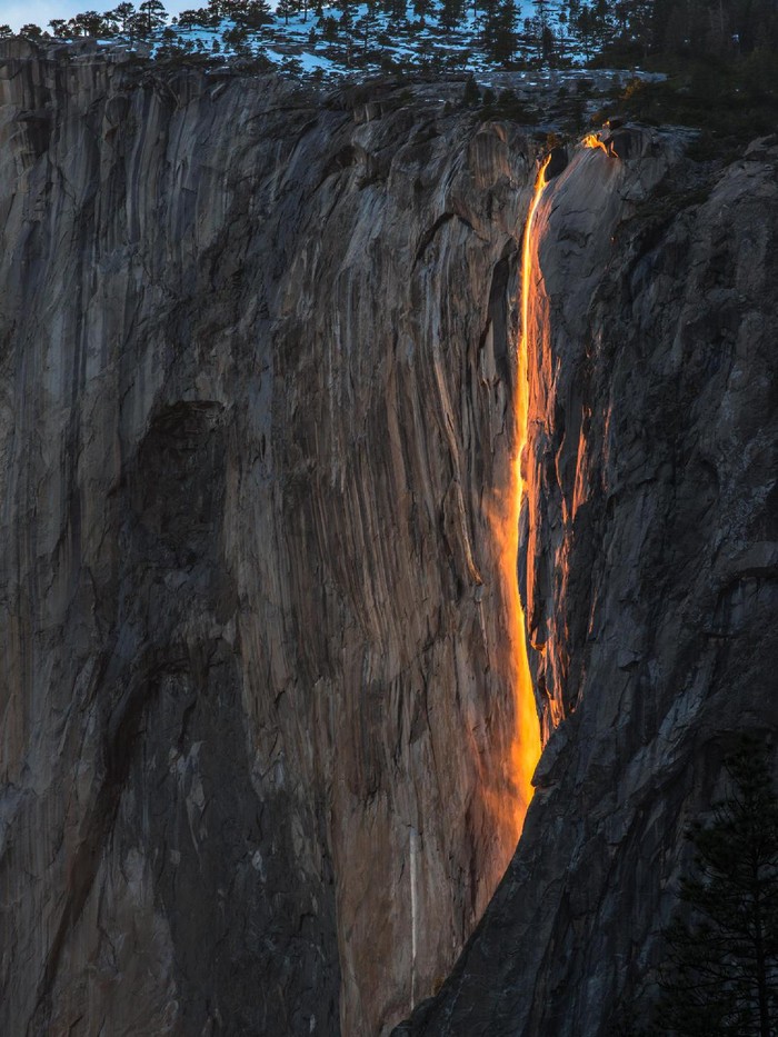 Horsetail Firefall adalah aliran air terjun yang terkena pantulan sinar matahari. Tepatnya di bulan Februari, adalah waktu terbaik untuk melihat air terjunnya benar-benar seperti api. Fenomena ini pun hanya terlihat saat sunset menjelang. Mau lihat ke sana?