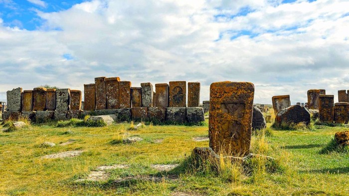 Noratus Cemetery atau disebut juga khachkars adalah abtu ukir yang memiliki simbol salib dan motif floral. Batu ukir ini didirikan di kuil-kuil Pagan pada masa itu.