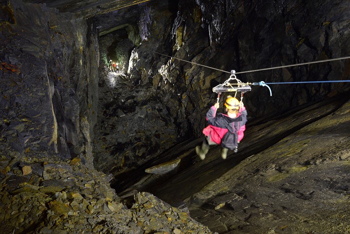 Wahana flying fox ini berada di kedalaman 400 meter di bawah tanah (go-below.co.uk) |