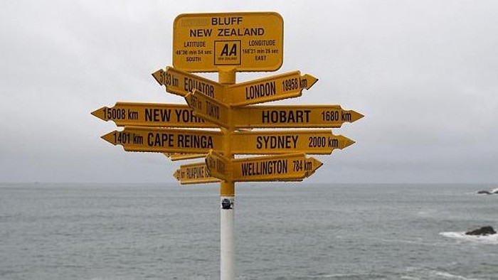 Papan penunjuk jalan ini berada di Stirling Point di Bluff, di selatan Selatan Selandia Baru. Papan ini menunjuk ke berbagai arah. Mulai dari Tokyo, Dog Island, Sydney, Kumagaya, Ruapuke Island, South Pole, Hobart, London, Wellington, Cape Ringa, sampai New York.