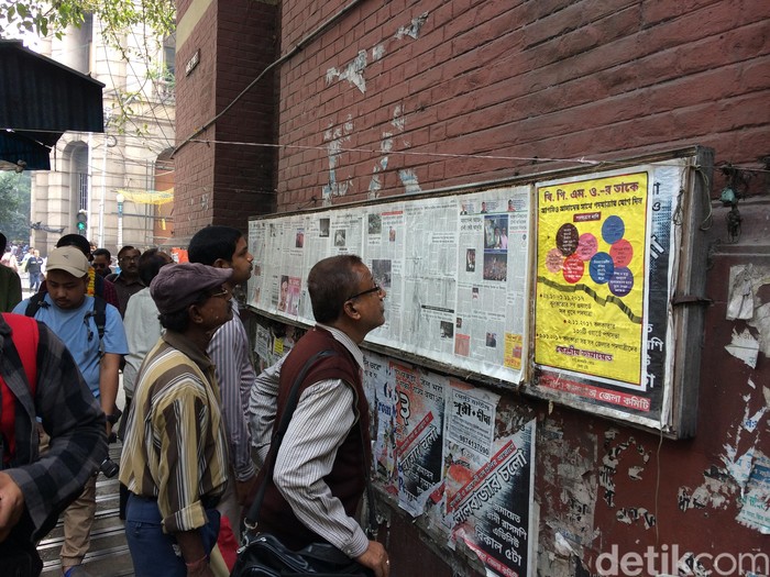detikTravel menyambangi Kolkata, India beberapa waktu lalu. Yang patut kita tiru adalah tingginya minat baca warga lokal di sana. Bahkan mereka masih memanfaatkan adanya majalah dinding (mading) untuk sekadar mencari informasi terbaru.