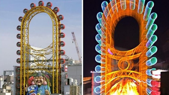 Traveler yang pernah wisata ke Dotonbori, Osaka, mungkin pernah melihat bianglala yang unik, menempel di gedung toko Don Quijote dengan lintasan yang tampak berbentuk lonjong. Lokasinya tak jauh dari papan reklame Glico Man yang ikonik.