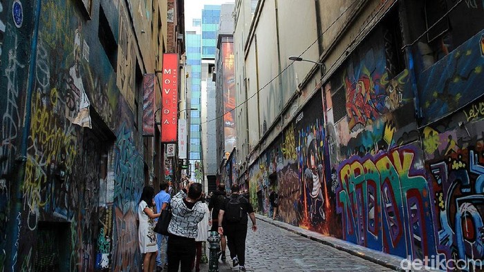 Adalah Hosier Lane, salah satu gang atau lane paling hits di CBD Melbourne, Australia. Atas undangan dari Garuda Indonesia dan Tourism Australia, detikTravel pun berkesempatan mampir ke sana Kamis kemarin (15/3/2018).