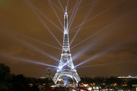 Pertunjukkan cahaya yang ada di Eiffel dipasang oleh Pierre Bideau pada tahun 1985. Pertunjukkan artistik ini ternyata dilindungi oleh hak cipta.