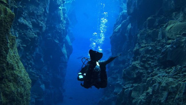 2 Lempeng benua itu bergerak saling menjauh satu sama lain. Para penyelam pun bisa diving di antara 2 retakan lempeng benua itu.
