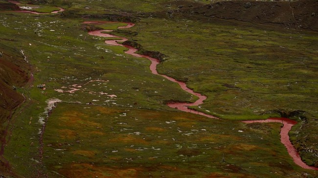 Tahukah kamu, di Peru terdapat sungai yang tak biasa. Jika umumnya sungai berair jernih, hijau, atau kecokelatan, di sini airnya merah!