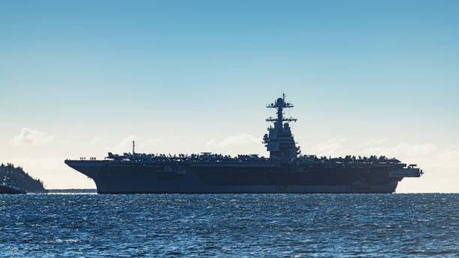 USS Gerald R Ford merupakan kapal militer terbesar di dunia saat ini, dengan panjang 1.092 kaki, lebar 256 kaki, dan berat perpindahan 112.000 ton.