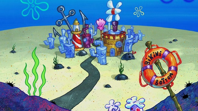 Konon katanya, Bikini Bottom yang menjadi rumah Spongebob dan kawan-kawannya di kartun terinspirasi dari Bikini Atoll. Rumor ini dibenarkan oleh Pencipta SpongeBob, Stephen Hillenburg, mengatakan nama Bikini Bottom terinspirasi dari pulau di Samudra Pasifik bernama Bikini Atoll.
