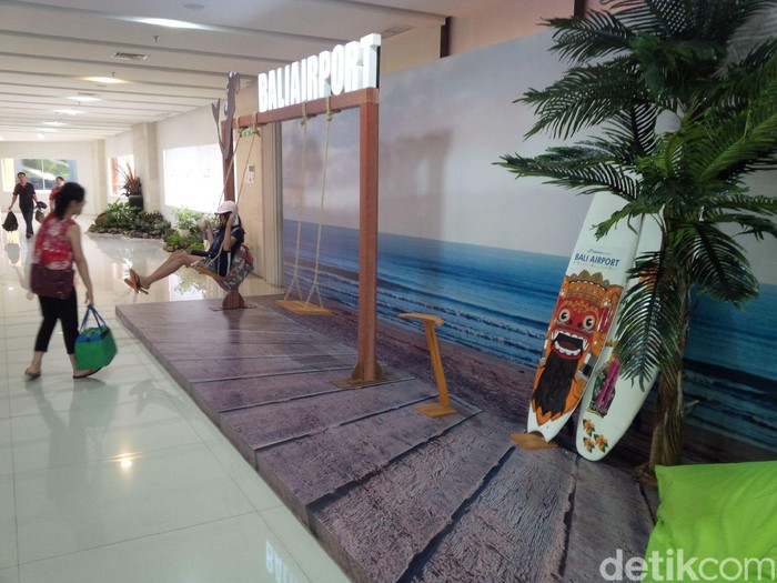 Pihak bandara sengaja menampilkan berbagai dekorasi seperti hanging summer rainbow, dan diorama unik bertema swing chill, holiday in Bali serta beach chill yang dapat membuat penumpang merasakan liburan yang santai dan menyenangkan (David/detikTravel)