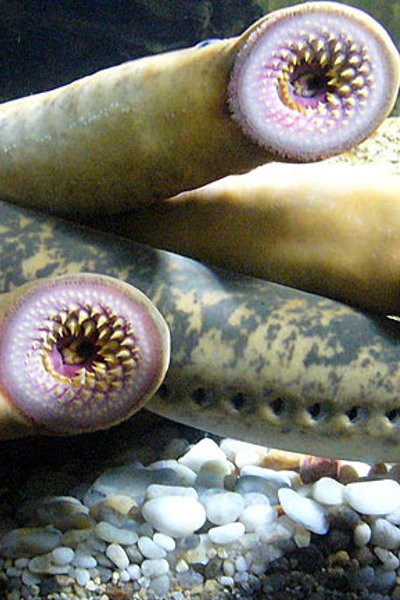 Lamprey adalah ikan panjang yang terlihat biasa saja. Tapi mulutnya yang berbentuk lingkaran ini terdiri dari gigi-gigi tajam. Tidak menggigit, hewan ini menyedot darah korbannya.
