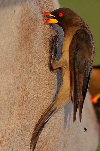 Tapi, selain memakan parasit, mereka juga memakan darah dan daging dari luka para hewan tersebut. Semakin lama, bisa-bisa hewan ini mati karena patukannya. Oxpecker tinggal di sub sahara Afrika.