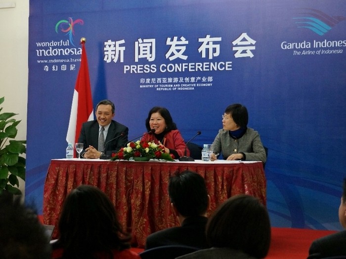 Situs Wisata Indonesia Bahasa Mandarin Diluncurkan di China - detikTravel Jumat, 15 Nov 2013 18:09 WIB Mari Elka Pangestu (tengah) dalam kunjungannya ke China (Kemenparekraf) Jakarta - (aff/aff) Infografis Lainnya Infografis Jumlah Turis Asing Turun, Malaysia Tetap Dominan Infografis Cek di Sini! Cara Mengisi All Indonesia Infografis 10 Maskapai Paling Tepat Waktu di ASEAN