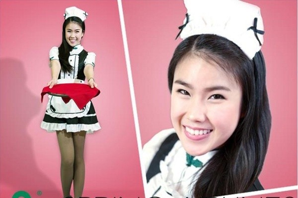 Kostum pelayannya berwarna hitam putih dengan topi dan apron, sepatu hak tinggi serta rok mini. Bahkan pilot pun akan diberikan kostum pelayan pria.