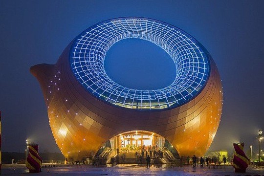 Selanjutnya, ada bangunan seperti teko yang berdiri dengan megahnya di Wuxi. Bangunan ini menjadi tempat untuk belanja dan sekaligus jadi latar menarik untuk wisatawan yang datang.
