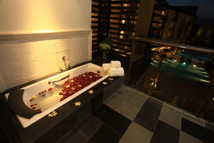 Soal pemandangan, hot & cold tub yang ada di dua kamar tersebut menghadap ke kolam renang dan air terjun buatan yang ada di bagian tengah The Trans Resort Bali. Kolam renangnya pun memiliki pasir putih seperti pantai!
