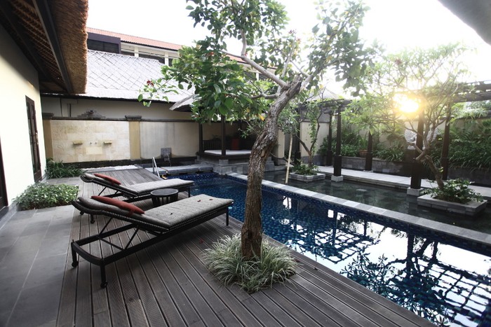 Di Presidential Villa Three Bedroom tersedia kolam renang privat dan bale bengong, yakni bangunan biasa yang dipakai masyarakat Bali sebagai tempat keluarga berkumpul setelah beraktivitas seharian di luar rumah.