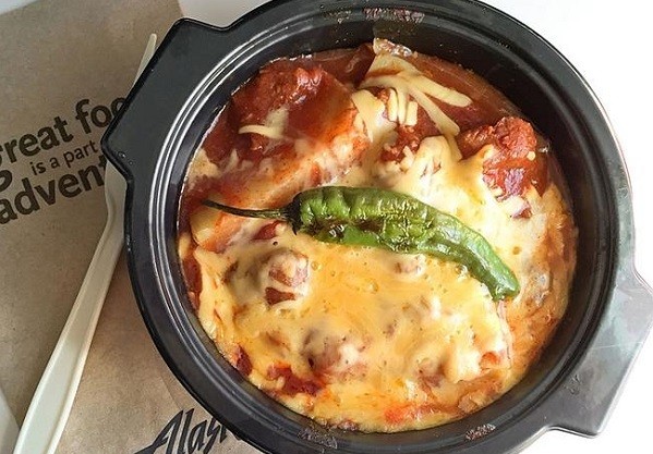 Maskapai Alaska Airlines termasuk salah satu maskapai yang menyajikan makanan enak di kelas ekonomi. Menu andalannya adalah Cascade Brisket Chili, atau daging sapi yang diberi potongan cabe dan tomat, serta diguyur kuah keju cair.