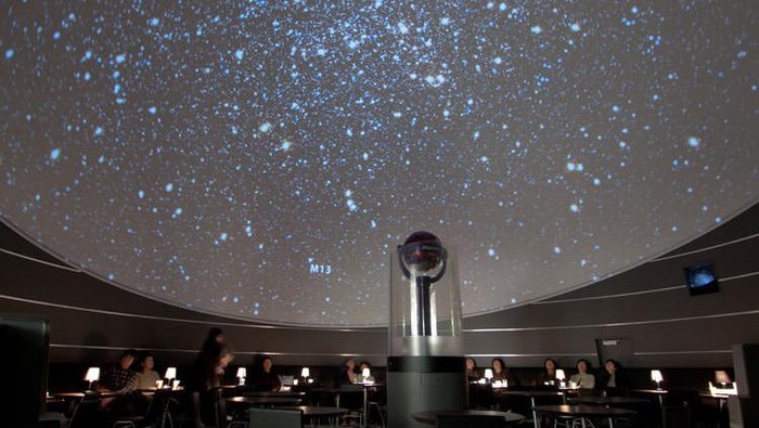 Sambil menunggu penerbangan berikutnya, traveler pun bisa nyemil sejenak sambil melihat puluhan ribu 'bintang' lewat fasilitas Planetarium di kafe.