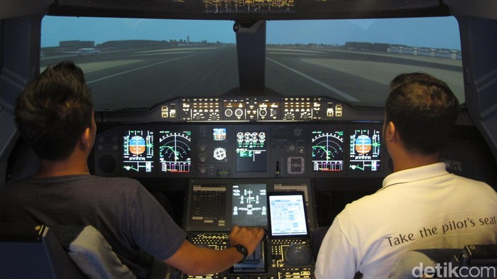 Tampak dari luar, The Emirates A380 Experience tampak seperti moncong pesawat. Sam, mempersilakan awak media masuk ke dalam. Terlihat, ruang kokpit dengan dua kursi pilot serta berbagai tombol. 'Take A Pilot's Seat' begitu jargonnya.