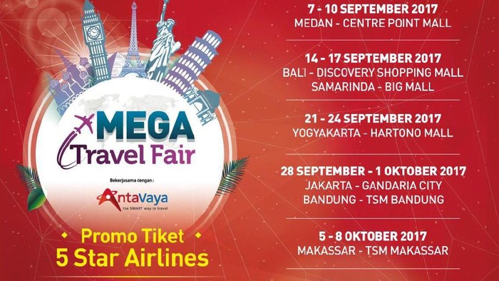 Mega Travel Fair digelar di Big Mall Samarinda, Kalimantan Timur. Pagelaran ini sudah berlangsung dari tanggal 14-17 September 2017, hari ini.
