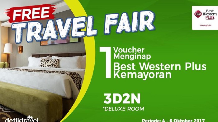 Di acara Free Travel Fair detikTravel, ada voucher menginap selama 3 hari 2 malam dari Best Western Plus Kemayoran untuk 1 orang pemenang. Simak cara untuk mendapatkannya di bawah ini ya traveler: