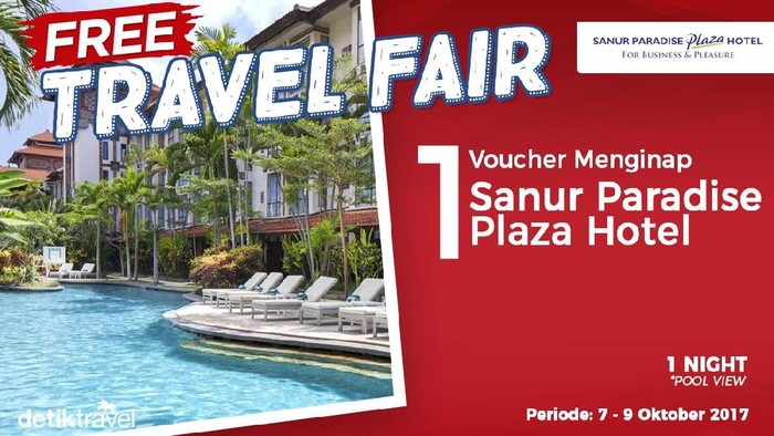 Sabtu (7/10/2017) Free Travel Fair dari detikTravel menawarkan voucher menginap gratis di Sanur Paradise Plaza Hotel untuk 2 orang pemenang. Ini caranya: