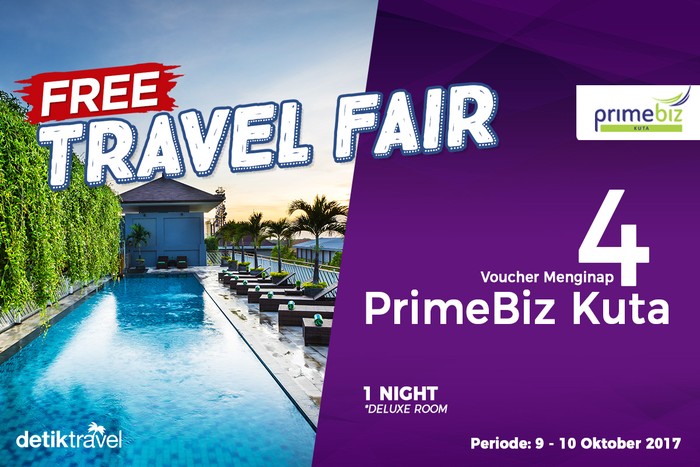 Free Travel Fair dari detikTravel kali ini, Senin (9/10/2017) bagi-bagi voucher bermalam gratis di PrimeBiz Kuta. Ini caranya: