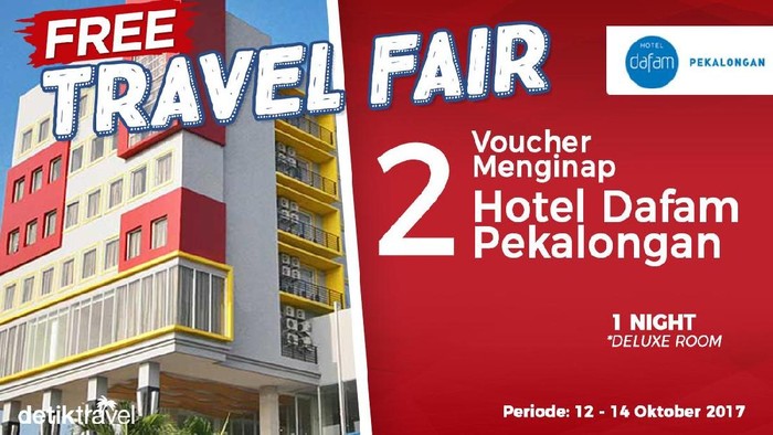 Kamis (12/10/2017) Free Travel Fair dari detikTravel menawarkan voucher menginap gratis di Hotel Dafam Pekalongan. Berikut ini cara mendapatkannya: