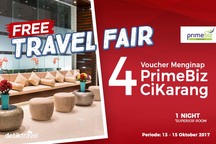 Jumat (13/10/2017) kali ini Free Travel Fair dari detikTravel bagi-bagi voucher bermalam gratis di PrimeBiz Cikarang. Ini caranya: